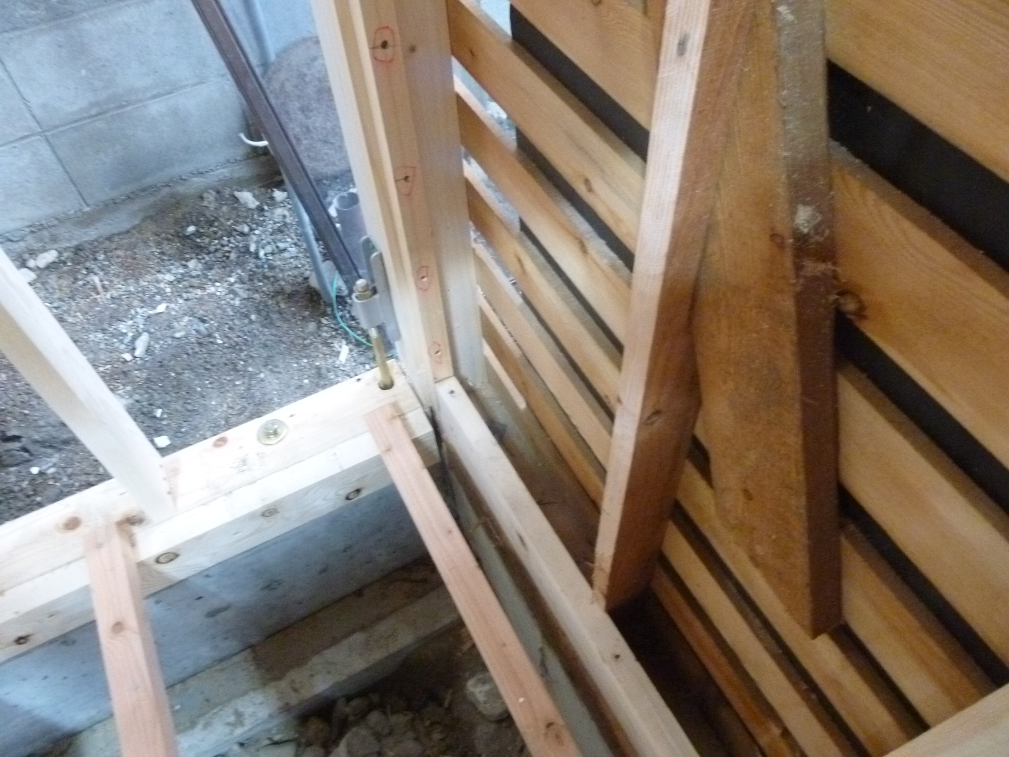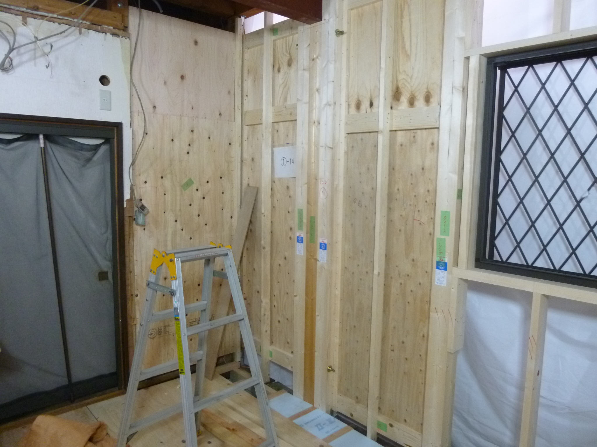 構造用合板と呼ばれる強い木合板で耐震壁を造ります