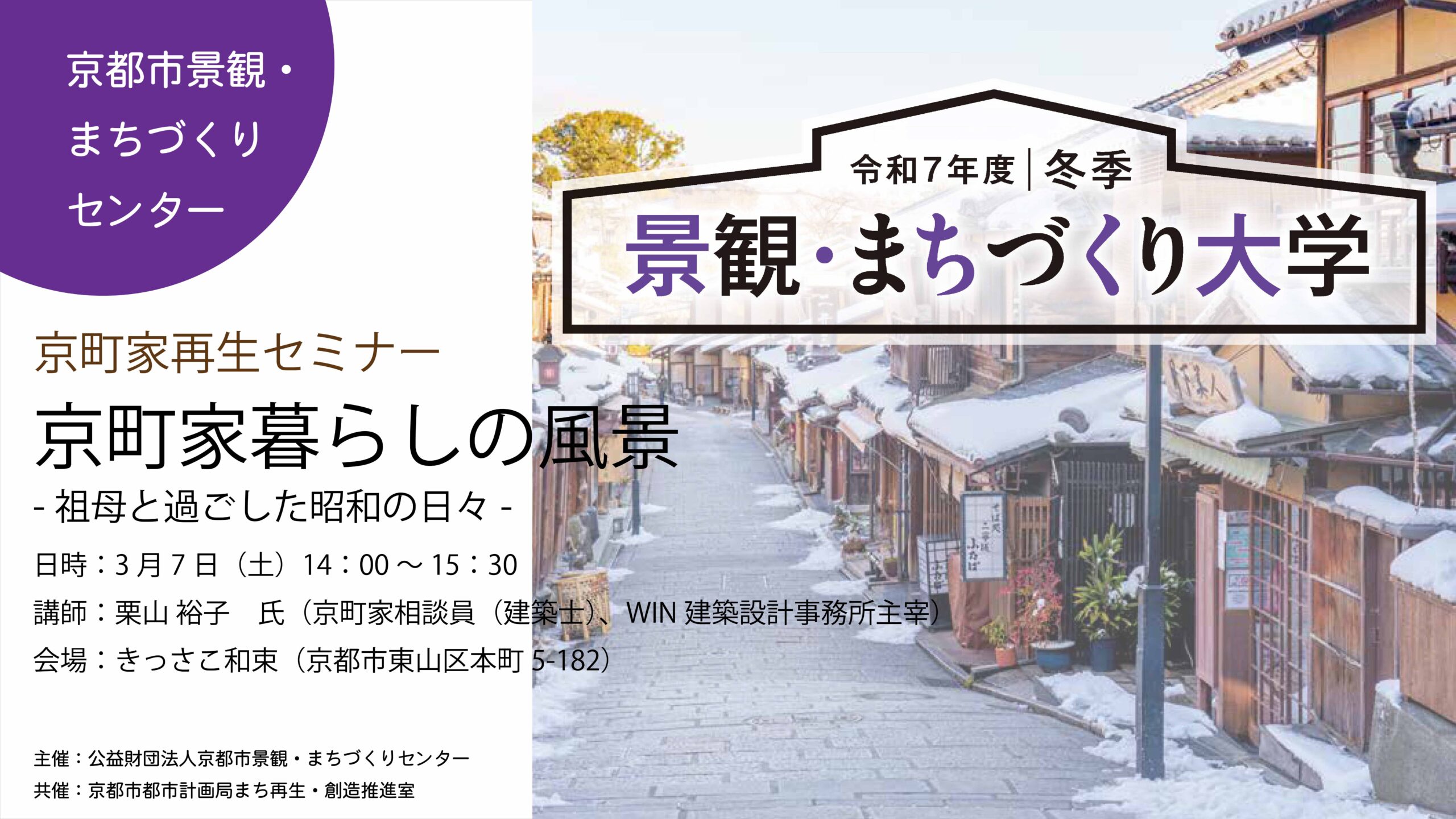 京町家再生セミナー「京町家暮らしの風景 -祖母と過ごした昭和の日々-」