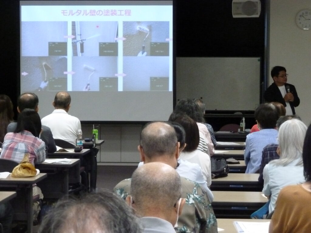 外壁や屋根に関する基礎知識、実際の塗装工事の流れや工法、塗料の種類、劣化を視るポイントなどを、具体的な事例や写真を用いて、プロの視点でわかりやすく解説していただきました!